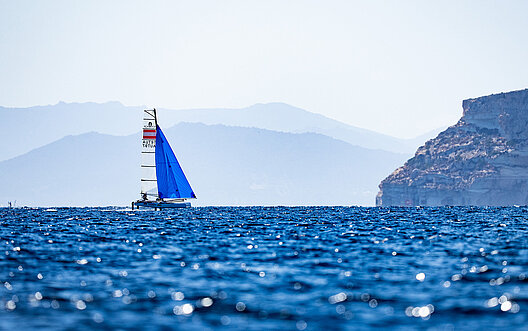 Laura Farese und Matthäus Zöchling haben am Samstag bei anspruchsvollen Bedingungen – viel Wind, hohe Welle – ihren ersten Wettfahrtsieg bei dieser Weltmeisterschaft eingefahren. Im abschließend Nacra 17-Rennen war das Duo vom Union Yacht Club Neusiedlersee eine Klasse für sich. „Wir haben den Start voll durchgezogen und dann ist unser Plan einfach aufgegangen“, richtet Vorschoter Matthäus Zöchling aus. Das Duo attackierte mit einem Port-Start, legte dann rasch nach links auf die bevorzugte Seite um und positionierte sich hervorragend zu den Konkurrenten. Ab der ersten Boje diktierten die beiden das Geschehen. In der Gesamtwertung sind sie wieder auf Rang neun. Im abschließenden Rennen am Sonntag, ohne Chance auf eine Medaille, wollen sie nochmals alles geben: „Wir haben gezeigt, dass wir es können, wenn wir alles am Punkt treffen. Das muss das Ziel für morgen sein“, sagt Laura Farese.