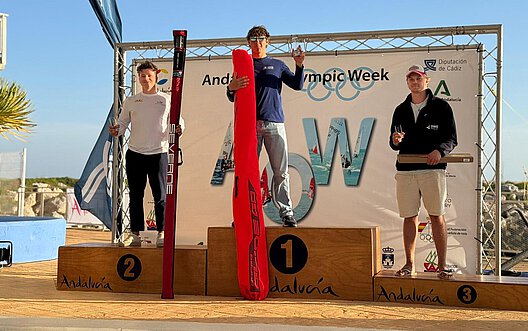 Für Theo Peter hat die neue Saison in der olympischen iQFoil-Klasse mit einem zweiten Platz bei der Andalusian Olympic Week begonnen. Exakt ein Monat vor der Trofeo Princesa Sophia – dem Auftakt zum diesjährigen Sailing Grand Slam – hat der Niederösterreicher seinen ersten Vergleich mit der Konkurrenz positiv absolviert. Bei der gut besetzten, dreitägigen Regatta vor Cadiz, Spanien, verbuchte der 23-Jährige einen Wettfahrtsieg.