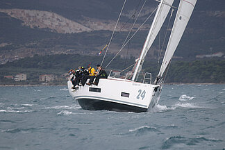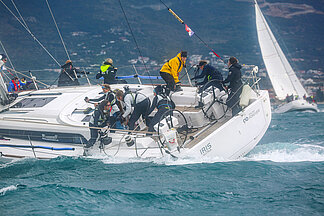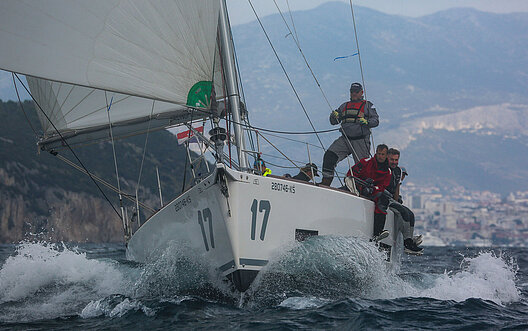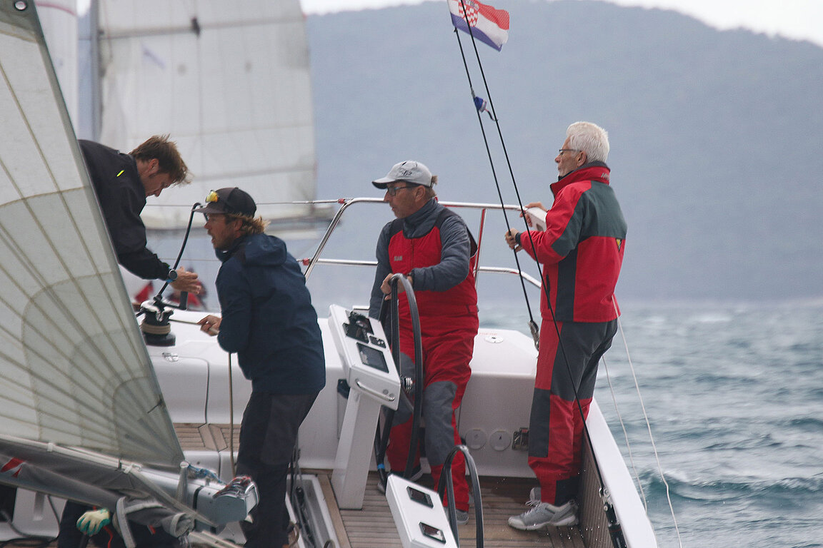 Nach einem windstillen Montag, an dem Wettfahrtleiter Gert Schmidleitner seinem Motto „besser keine Wettfahrt als eine schlechte“ treu blieb, zeigte sich am Dienstag der Jugo von seiner besten Seite: 20 Knoten Wind und hohe Wellen außerhalb der Bucht von Kaštela forderten Mensch und Material gleichermaßen. Drei Wettfahrten in Folge lieferten spektakuläre Szenen – inklusive einiger verlorener Gennaker und Relingteile.