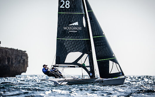 Zum Auftakt der 49er-Goldflotte haben Keanu Prettner und Jakob Flachberger aufgetrumpft: Das Duo vom Union Yacht Club Wolfgangsee ließ zwar im ersten Race auf der zweiten Kreuz nach einer falschen Entscheidung noch viel liegen (18), zeigte aber in den abschließenden beiden Wettfahrten mit jeweils Rang drei gehörig auf. „Set-up und Speed waren einfach gut. Und wir hatten auch das nötige Glück, dass die von uns gewählten Seiten perfekt funktioniert haben. Diese Komponenten haben wir dann gut zusammengesetzt und zwei Podiumsplätze ins Ziel gebracht“, resümiert Steuermann Keanu Prettner. In den abschließenden drei Rennen der Goldflotte am Freitag will die Salzburger Skiff-Paarung „noch etwas mehr riskieren, solide Wettfahrten segeln, um die Medal-Series zu erreichen“. In der Gesamtwertung liegen Prettner/Flachberger nun an neunter Stelle.